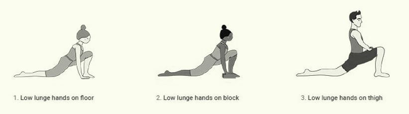 Low lunges (Anjaneyasana) are great for releasing the hip flexors and are accessible for all levels. Because the back knee is on the ground, you can really sink into this pose in a long, relaxed hold. Choose the variation (below) that gives you a satisfying stretch in the front of the back hip.